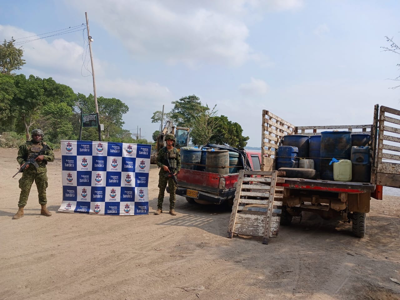 Las operaciones realizadas en los municipios de Achí, Pinillos y Regidor en Bolívar, Alto Baudó, Carmen del Darién, Quibdó y Riosucio en Chocó, La Gloria en Cesar y Vigía del Fuerte en Antioquia, permitieron la incautación de cerca de 144 mil galones de combustible y 300 toneladas de cemento, afectando la cadena logística de las organizaciones al servicio del narcotráfico.