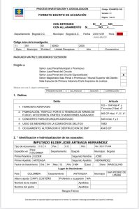 Según el documento, los hechos hacen parte de las operaciones de una estructura criminal activa desde 2022, integrada por al menos diez personas, dedicada a sicariato, tráfico de armas y reclutamiento de menores en Bogotá y otras ciudades.