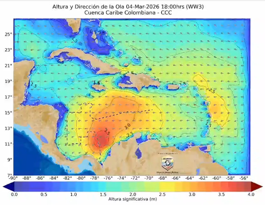 Asimismo, la entidad señaló que continuará realizando monitoreo permanente de las condiciones meteorológicas y oceanográficas, con el fin de emitir alertas oportunas y garantizar la seguridad en las actividades que se desarrollan en el mar Caribe.