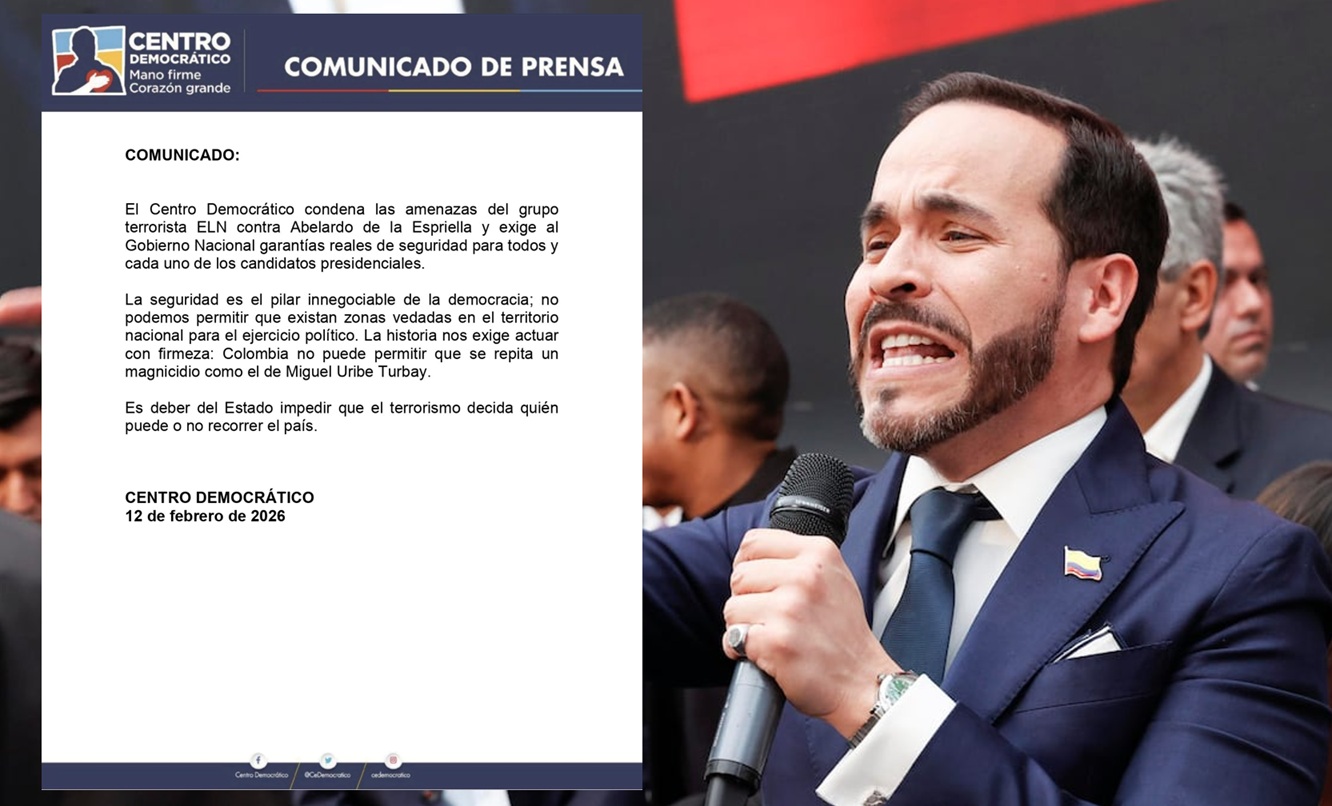 El partido Centro Democrático se pronunció frente a las presuntas amenazas del ELN contra el dirigente político Abelardo de la Espriella, y exigió al Gobierno nacional garantizar la seguridad de todos los candidatos en el país.