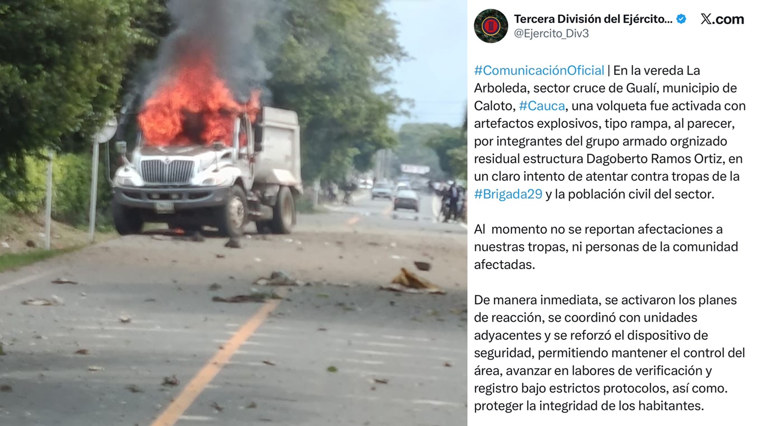 El norte del Cauca ha sido históricamente un territorio con presencia de grupos armados ilegales, y los recientes incidentes reavivan la preocupación por la seguridad en la región, especialmente en sectores rurales cercanos a vías principales y bases militares.