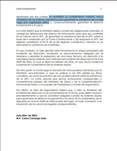 Corte Constitucional mantiene incidente de desacato contra MinSalud por incumplir reajuste de la UPC