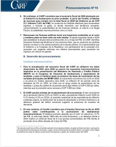 El CARF enfatizó la importancia de acciones rápidas y responsables por parte del Ejecutivo y del Congreso para evitar un empeoramiento de la situación fiscal en el corto plazo.