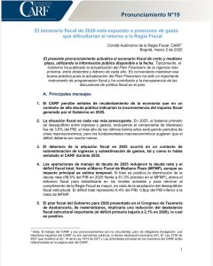 El CARF enfatizó la importancia de acciones rápidas y responsables por parte del Ejecutivo y del Congreso para evitar un empeoramiento de la situación fiscal en el corto plazo.