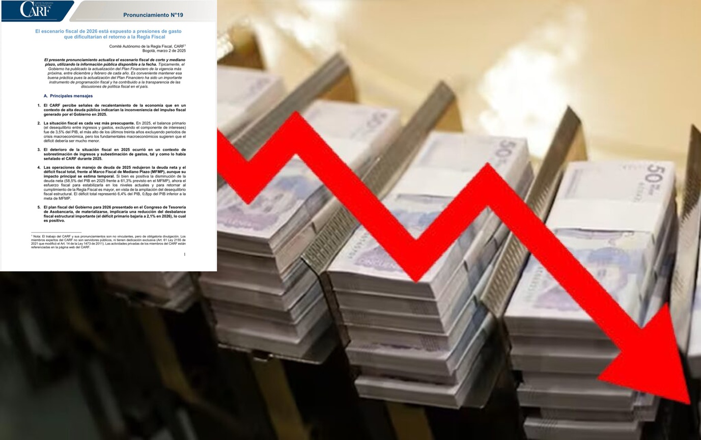 El Comité Autónomo de la Regla Fiscal (CARF) advirtió que la situación fiscal del país es “cada vez más preocupante”, luego de que el déficit cerrara el año pasado en 3,5 % del PIB, el nivel más alto en tres décadas, excluyendo periodos de crisis económicas.