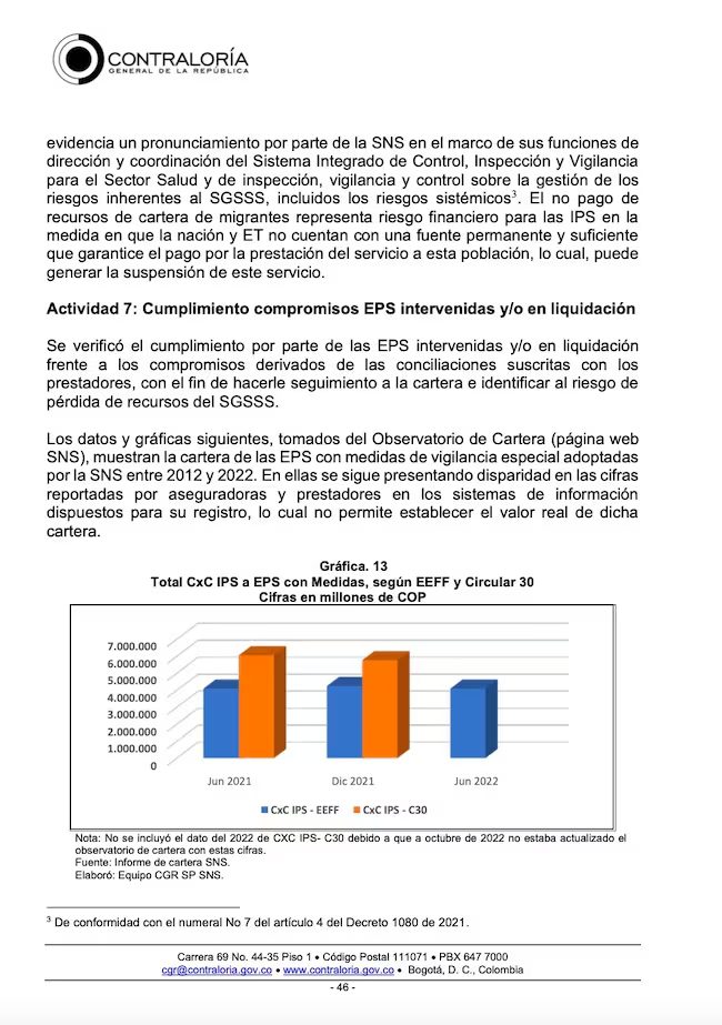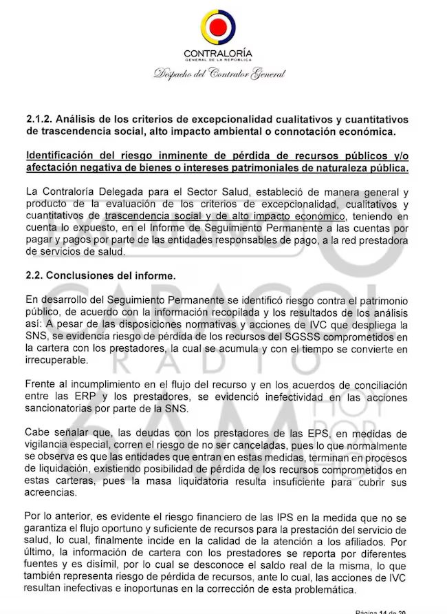 El documento de 20 páginas, se envió en su momento al Superintendente de Salud, Ulahi Dan Beltran, con copia al presidente, Gustavo Petro, con una Función de Advertencia por las irregularidades en las acciones de vigilancia y control de la entidad y advierte sobre la inminente pérdida de recursos públicos del Sistema de Salud.