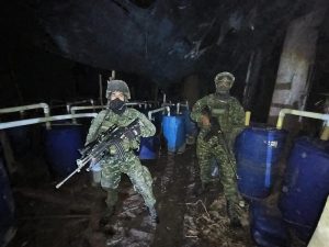 En operaciones militares realizadas por el Ejército Nacional en la zona rural de Valle del Guamuez, Putumayo, fue destruido un laboratorio destinado al procesamiento de ácido sulfúrico, utilizado en actividades ilícitas.