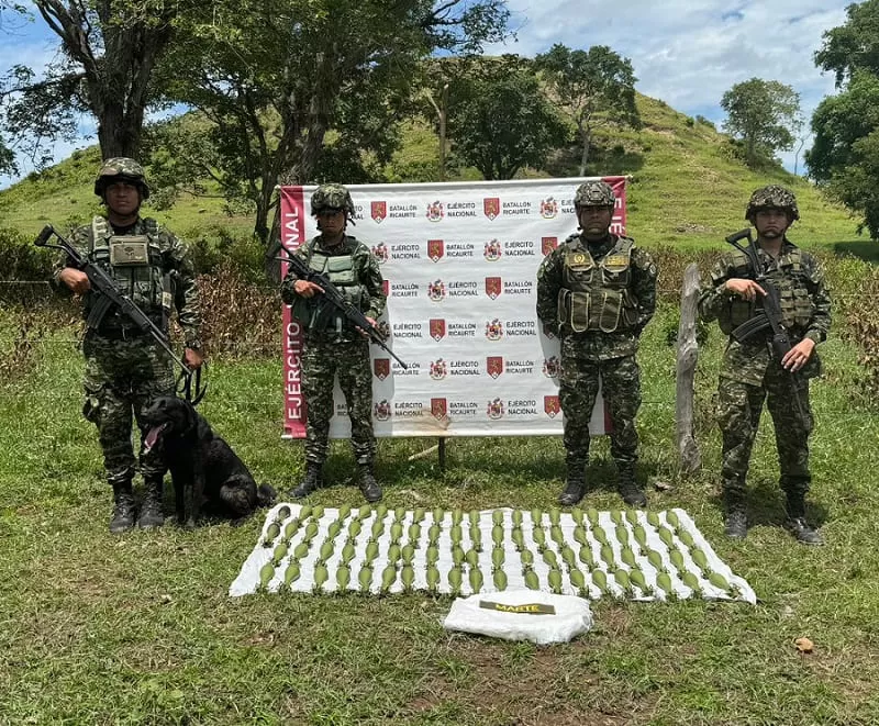 En una rápida reacción y mediante información de inteligencia, tropas de la Quinta Brigada lograron la neutralización de una posible acción terrorista, con el hallazgo de una caleta que contenía 82 granadas de 60 milímetros, de fabricación artesanal.