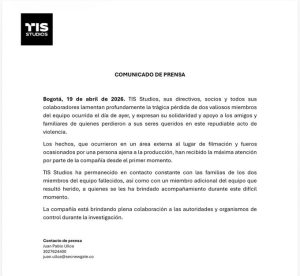 El golpe emocional ha sido profundo para los integrantes de la producción. La actriz Carolina Gaitán, parte del elenco, utilizó sus redes sociales para expresar su duelo. Con un mensaje cargado de nostalgia y respeto, la artista recordó a uno de los fallecidos, a quien identificó como ‘Nico’.