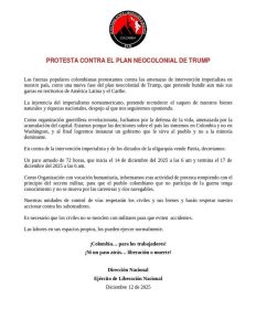 De acuerdo con el comunicado divulgado por ese grupo armado, la decisión respondería a las “posibles intervenciones de Estados Unidos en Colombia, América Latina y el Caribe”, hecho que, según ellos, justificaría la imposición de restricciones a la movilidad durante esos días.