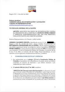 El equipo jurídico del abogado Abelardo de la Espriella presentó una solicitud formal ante la Comisión de Acusaciones de la Cámara de Representantes para que se investigue al presidente Gustavo Petro por una presunta violación ilícita de comunicaciones.