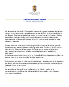 Desde la Administración Municipal, se hizo un llamado a la calma, destacando que la situación está siendo controlada y que se continúan recopilando detalles para esclarecer los hechos.