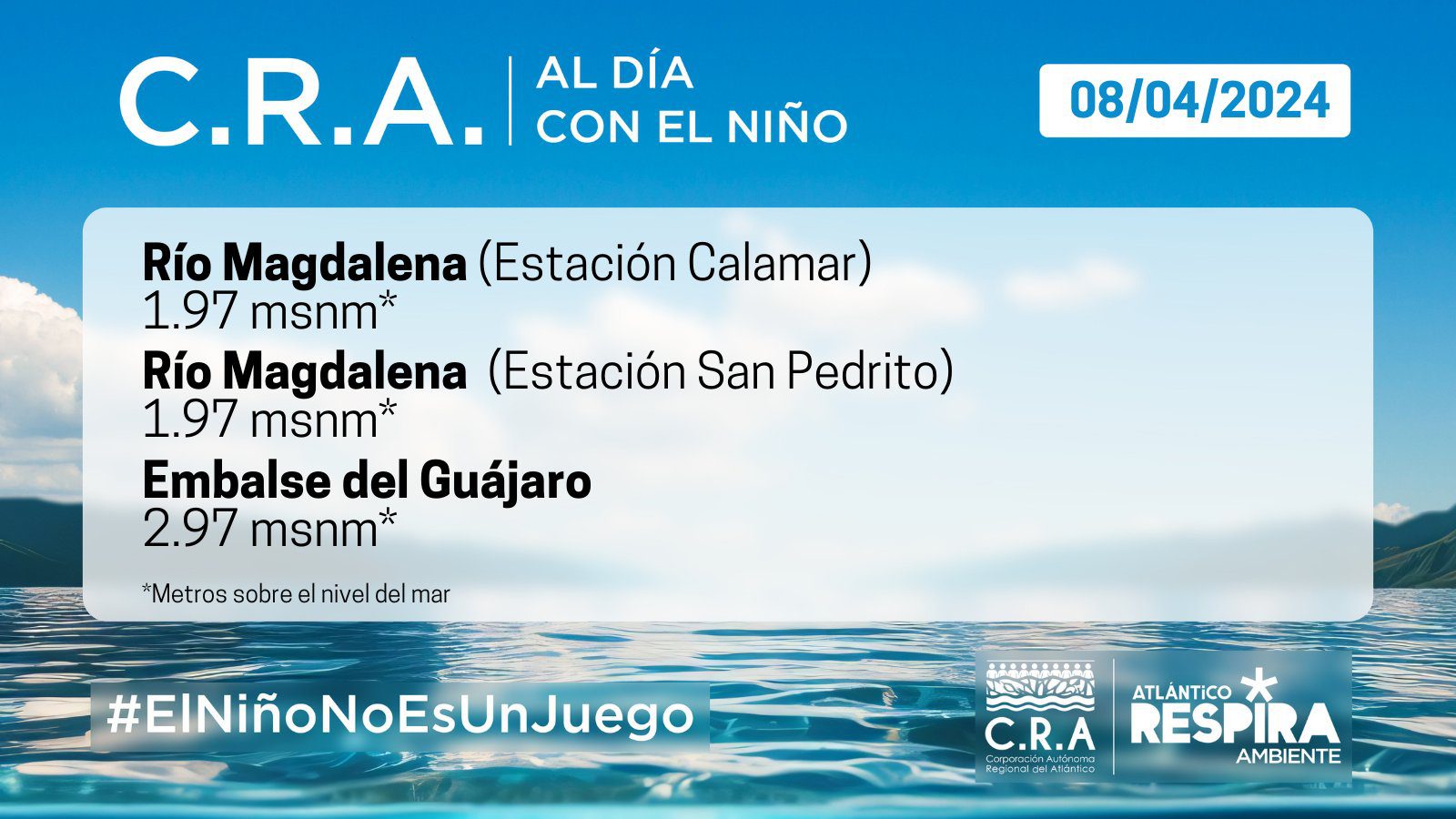 Río Magdalena (Estación Calamar): 1.97 metros sobre el nivel del mar.