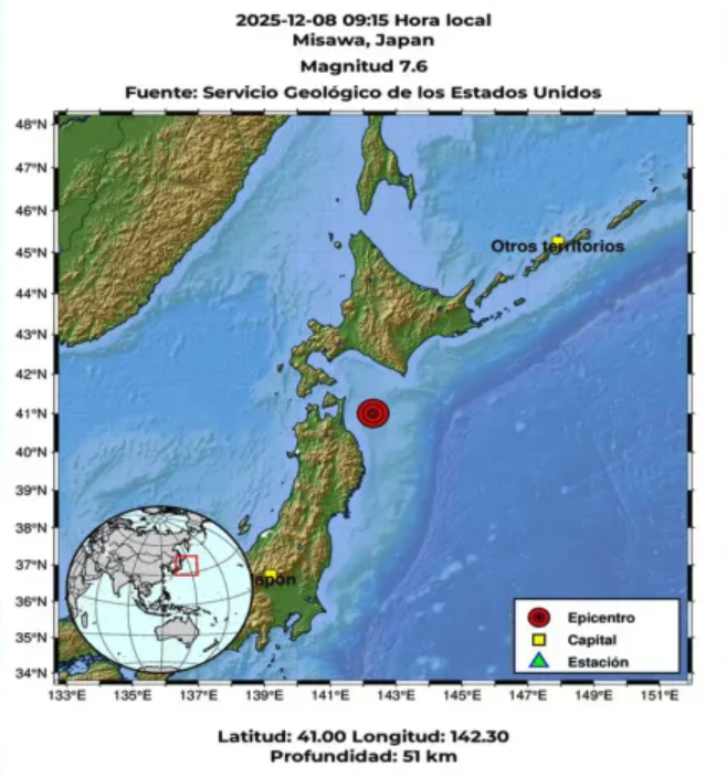 Japón entró este lunes en máxima alerta después de que un potente terremoto de magnitud 7,6 estremeciera amplias zonas del norte y el este del archipiélago, obligando a activar una advertencia urgente de tsunami para varias prefecturas vulnerables de la costa del Pacífico.