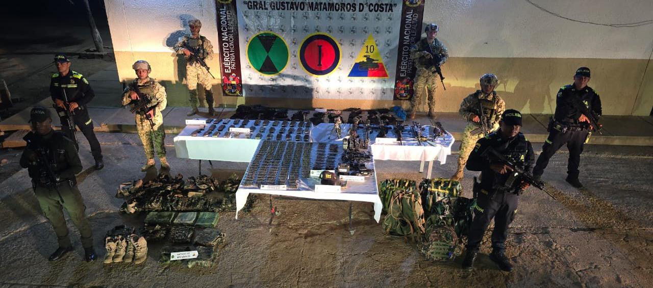 Durante la intervención fueron encontrados fusiles, una ametralladora, proveedores y cartuchos, además de prendas de vestir alusivas al grupo armado. También se incautaron equipos de comunicación e información, entre ellos radios, computadores y memorias USB, elementos clave para la coordinación de acciones ilegales en la región.