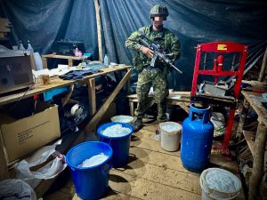 Tropas del Comando Contra el Narcotráfico y Amenazas Transnacionales del Ejército Nacional, junto con la Fuerza Aérea Colombiana y la Policía Nacional, destruyeron un laboratorio de producción de clorhidrato de cocaína en la vereda Porvenir, municipio de San Roque, en un operativo conjunto que representa un duro golpe a las economías ilícitas de la región.