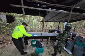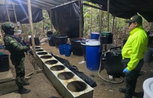 En el lugar se incautaron 523 kilogramos de clorhidrato de cocaína y 396 galones de clorhidrato de cocaína en suspensión, así como grandes cantidades de insumos líquidos, sólidos y elementos empleados para la producción a gran escala de estupefacientes.