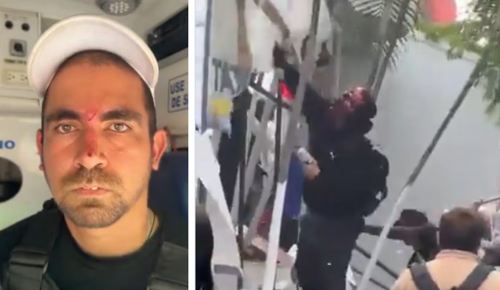 Otro video, divulgado, deja ver la denuncia del guarda de seguridad de la sede del partido de derecha, quien fue golpeado en la cara.