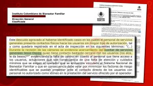 Según el informe, el entonces auxiliar de servicios generales Jesús Ospina quedó registrado en las cámaras de seguridad del plantel “alzando a los niños y dándoles besos”, conducta que fue reportada por el ICBF como un posible riesgo para los menores.