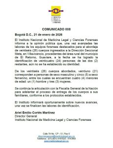 El Instituto Nacional de Medicina Legal y Ciencias Forenses confirmó que han sido identificados 24 cadáveres producto de los enfrentamientos registrados entre disidencias de las Farc en el departamento del Guaviare.