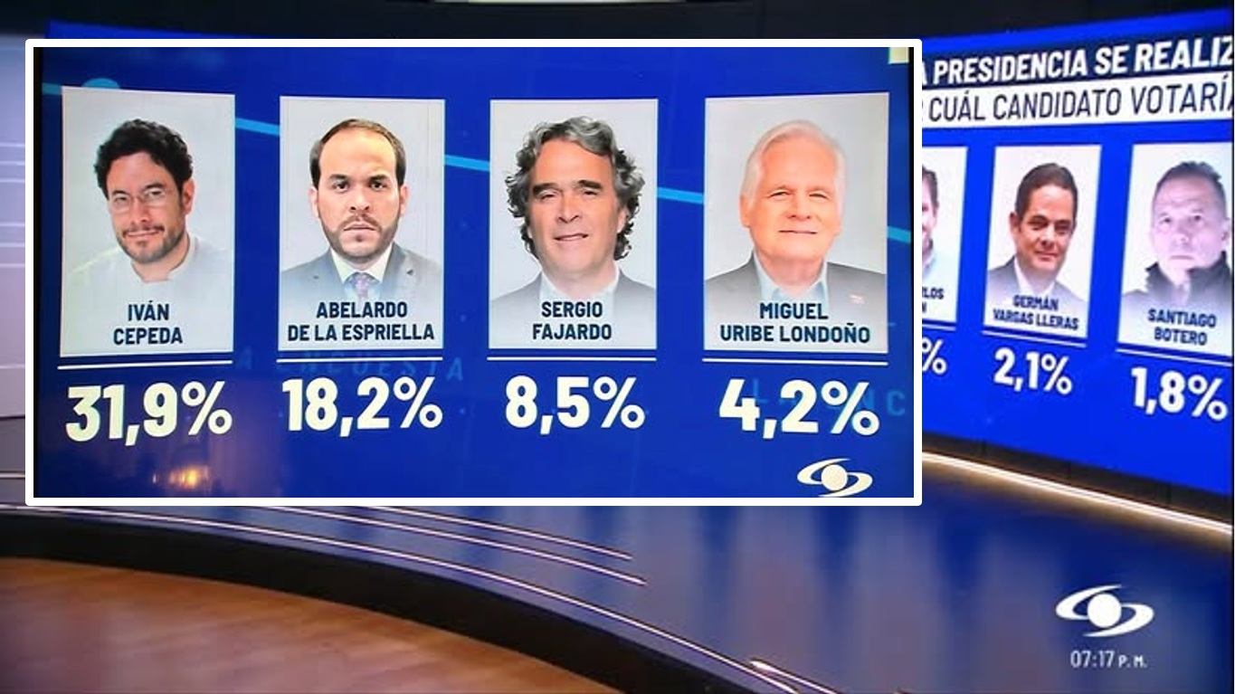 Según el estudio, si las elecciones se llevaran a cabo el próximo domingo, Cepeda obtendría un 31,9% de apoyo. En segundo lugar se ubica Abelardo de la Espriella, con 18,2%, seguido por Sergio Fajardo, quien alcanza el 8,5%.
