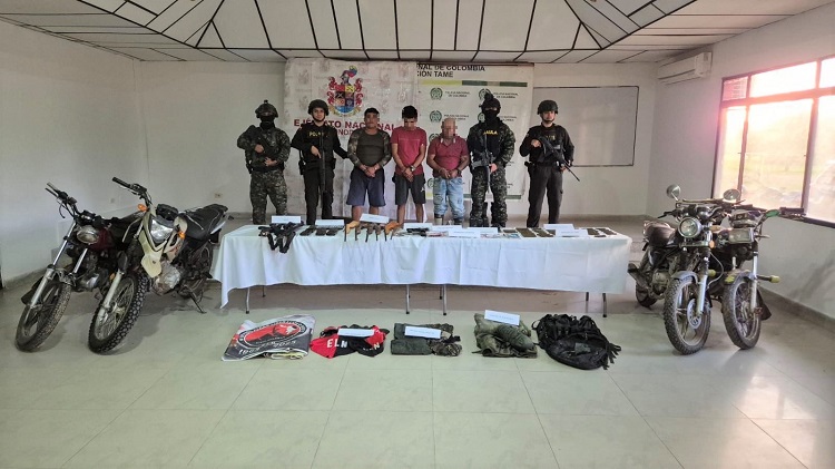 Tropas del Ejército Nacional capturaron a tres integrantes del Frente Domingo Laín Sáenz, del grupo armado organizado (GAO) ELN, quienes serían los presuntos responsables de ataques terroristas contra la infraestructura crítica del Estado, específicamente contra la válvula 26 del oleoducto Bicentenario, así como de acciones armadas contra la Fuerza Pública y la población civil en el sector de Corocito.
