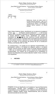 Castillo acudió al mecanismo constitucional al considerar que se estarían afectando sus derechos políticos y el debido proceso.