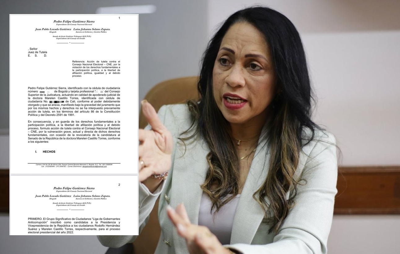 La candidata al Senado por el Centro Democrático, Marelen Castillo, presentó una acción de tutela luego de que el Consejo Nacional Electoral revocara su inscripción como aspirante al Congreso, al considerar que habría incurrido en doble militancia.