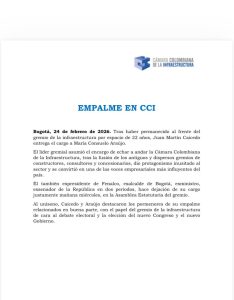 Araújo llega a la dirección del principal gremio del sector infraestructura en el país en un momento clave para el desarrollo de proyectos estratégicos en vías, concesiones, transporte y obras públicas. Su designación marca el inicio de una nueva etapa para la CCI, organización que agrupa a empresas constructoras, concesionarios y firmas vinculadas al desarrollo de infraestructura en Colombia.