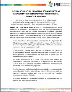 Pese a la falta de consensos, los gobernadores manifestaron su disposición a continuar en escenarios de diálogo y participar en mesas técnicas convocadas por el Gobierno, siempre que se busquen soluciones que no comprometan la estabilidad fiscal de los departamentos ni la financiación de derechos fundamentales.