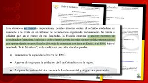 En la denuncia se hace referencia expresa a estructuras con base en Dubái, las cuales, de acuerdo con el planteamiento del Gobierno colombiano, podrían estar vinculadas a esquemas de financiamiento y apoyo internacional al EMC, fortaleciendo su capacidad criminal y su accionar armado en el territorio nacional.