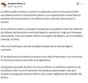 El presidente Gustavo Petro reaccionó a la carta enviada por la Unión Sindical Obrera en la que se solicita la salida de Ricardo Roa de la presidencia de Ecopetrol.