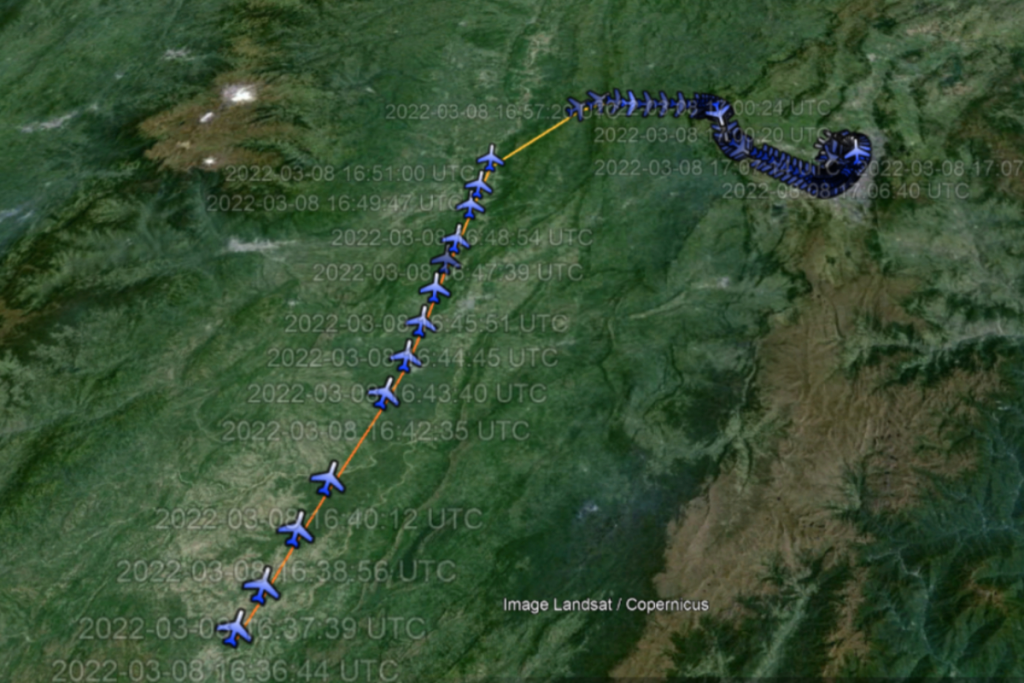 Según el reporte de Flight Radar, herramienta de rastreo de vuelos, el avión ligero de Contecha, un Beech C90B King Air con capacidad para transportar seis pasajeros, despegó de Bogotá a las 8:41 de la mañana del 8 de marzo con destino al sur del país. En la gráfica de recorrido del vuelo, el aterrizaje se da 38 minutos después en inmediaciones de Natagaima, municipio a una hora de Neiva en Huila.