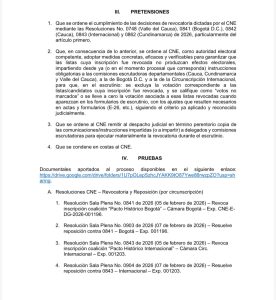 Ante el Tribunal Administrativo de Cundinamarca fue radicada una solicitud para que se ordene a la autoridad electoral no contabilizar los votos correspondientes a las listas del Pacto Histórico a la Cámara de Representantes que fueron previamente revocadas por el Consejo Nacional Electoral (CNE).