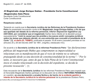 Este hecho se presenta en medio del análisis que adelanta la Corte Constitucional sobre la reforma pensional, una de las iniciativas más relevantes del actual Gobierno y que ha generado amplio debate jurídico, político y social en el país.