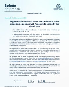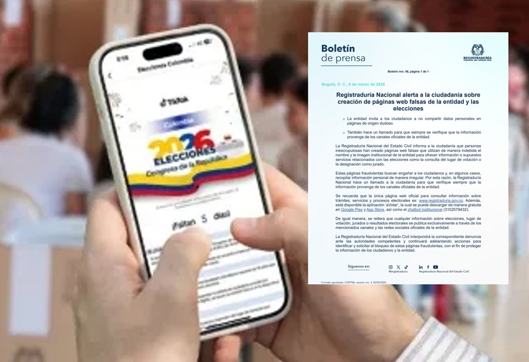 Ante esta situación, la Registraduría hizo un llamado a la ciudadanía para que verifique siempre que la información provenga únicamente de los canales oficiales, con el fin de evitar caer en posibles fraudes durante el proceso electoral.