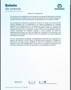 La Registraduría Nacional anunció que entre el 27 y el 30 de noviembre se llevará a cabo la segunda jornada de inscripción de ciudadanos en los puestos de votación de todo el país, como parte de la preparación para las elecciones de 2026.