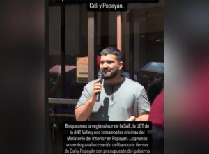 Lara también admitió que tiene un allegado trabajando en la Sociedad de Activos Especiales (SAE), una de las entidades ocupadas: “Lo que haga mi hermano es tema aparte, no tiene nada que ver con las movilizaciones. Además, no somos beneficiarios de la tierra que se está pidiendo y mi hermano incluso trabaja en Bogotá”.