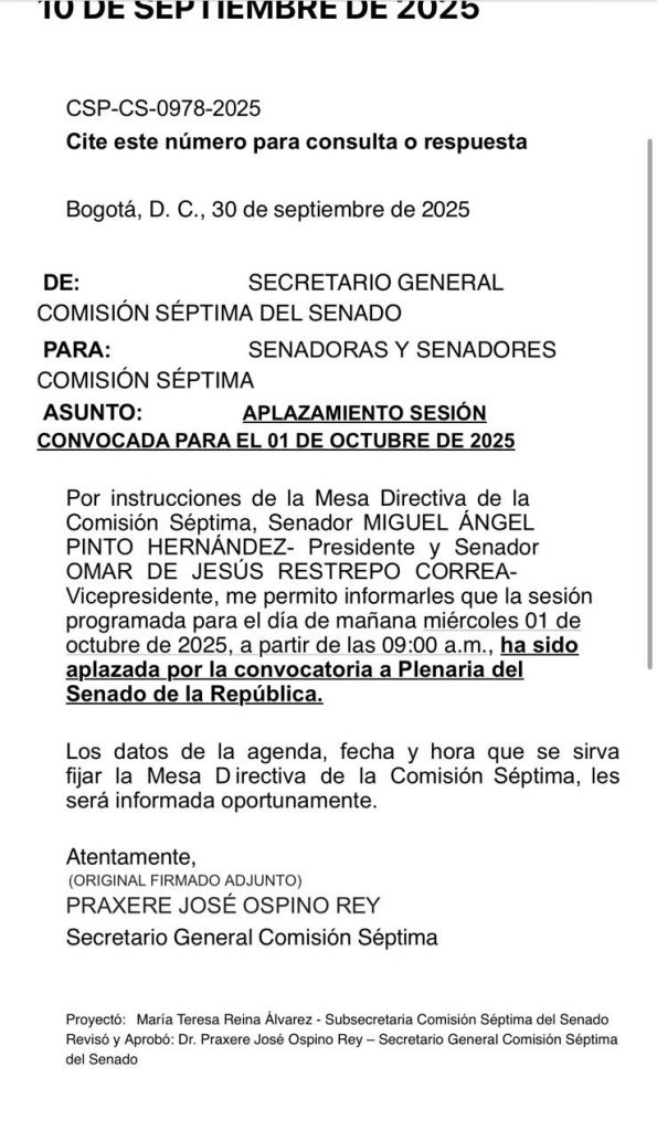 Aunque este miércoles 1 de octubre inició la exposición de la ponencia que busca archivar el proyecto, la sesión fue cancelada porque a la misma hora se convocó la plenaria.