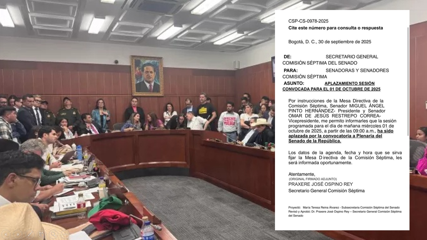 Aunque este miércoles 1 de octubre inició la exposición de la ponencia que busca archivar el proyecto, la sesión fue cancelada porque a la misma hora se convocó la plenaria.