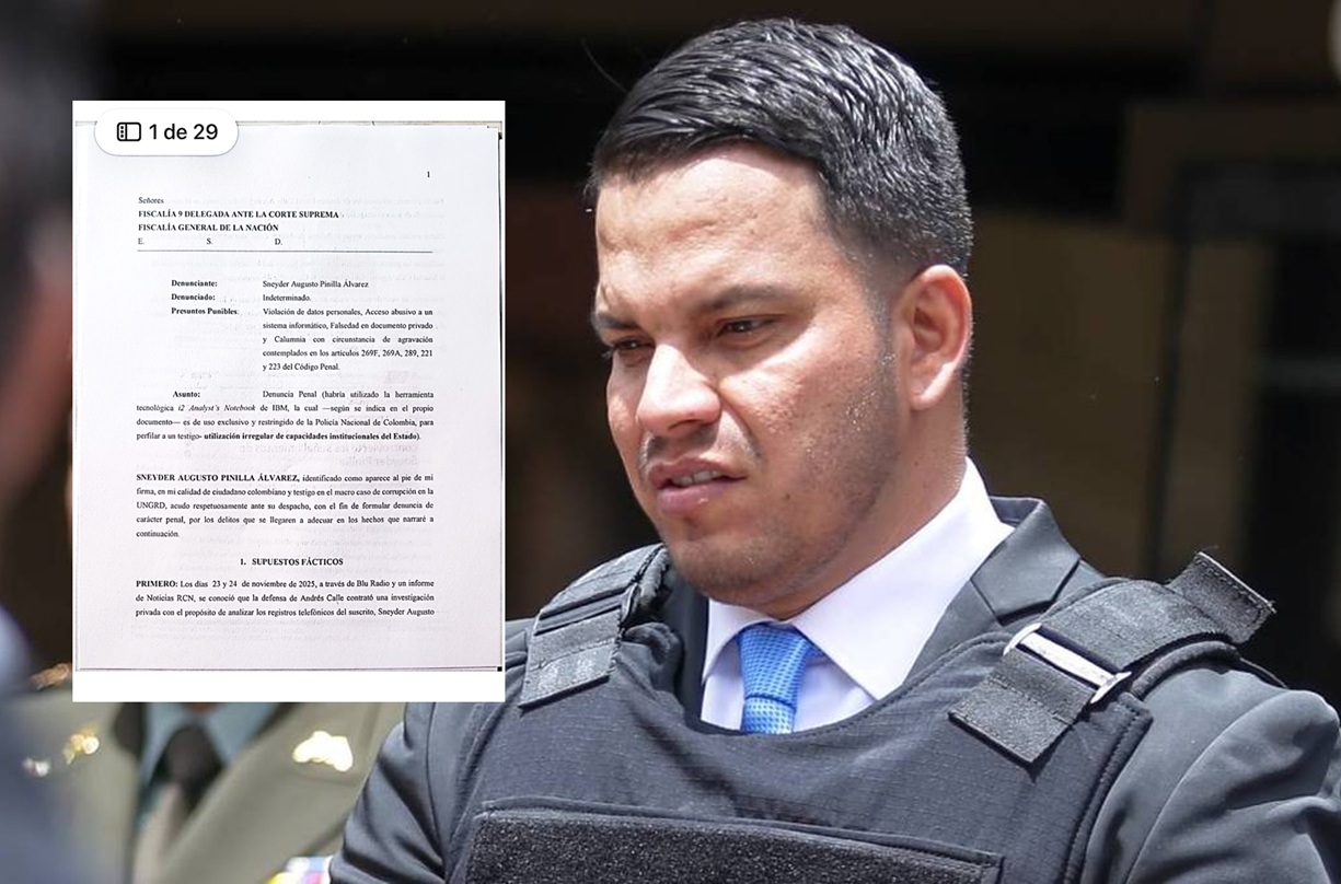 El testigo clave en el escándalo de corrupción de la UNGRD, Sneyder Pinilla, presentó ante la FiscaliaCol una denuncia formal en la que asegura que policías habrían actuado presuntamente al servicio del representante Andrés Calle para perfilarlo de manera ilegal y acceder a información confidencial de su celular sin autorización judicial.