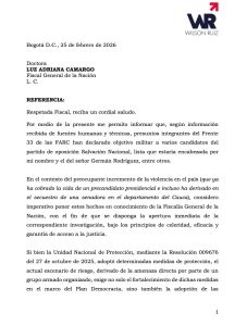 Según el mensaje difundido por Ruiz, ya se han enviado comunicaciones formales a la Fiscalía General de la Nación, liderada por Luz Adriana Camargo, y al Ministro del Interior, Alfonso Benedetti, para ponerlos en conocimiento de la situación y solicitar protección.