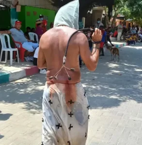 Se trata de una práctica con más de 200 años de historia, en la que decenas de hombres recorren la llamada “calle de la Amargura” mientras se azotan la espalda como forma de cumplir promesas religiosas, pedir milagros o agradecer favores concedidos.