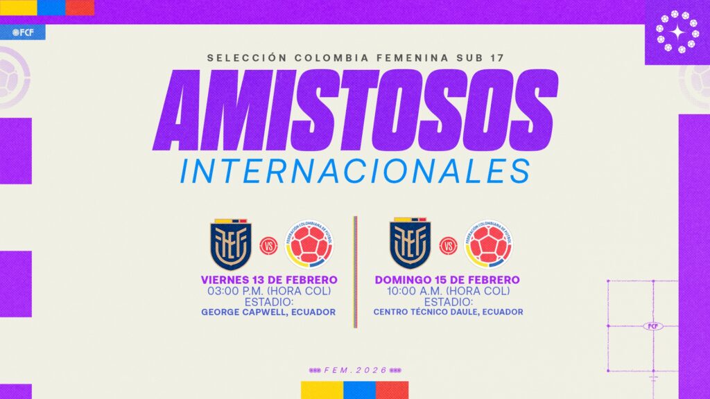 En el marco de su preparación para el CONMEBOL Femenino Sub-17, que se disputará entre el 22 de abril y el 16 de mayo, la Selección Colombia Femenina de la categoría afrontará dos partidos amistosos internacionales ante Ecuador.