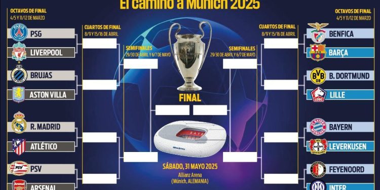 La UEFA definió los cruces de octavos de final de la Champions League, destacando el clásico de Madrid entre Real Madrid y Atlético de Madrid. Los partidos de ida se jugarán entre el 4 y 5 de marzo, mientras que los encuentros de vuelta serán el 11 y 12 de marzo. A continuación, todos los enfrentamientos: