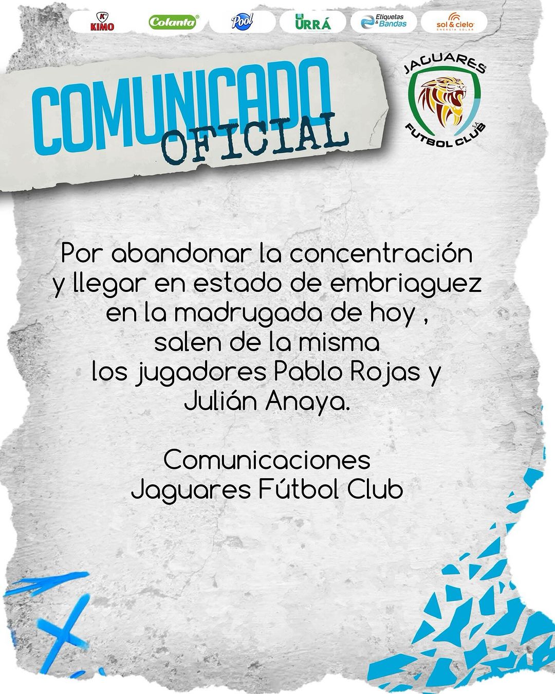 El club Jaguares ha tomado una drástica decisión al anunciar la exclusión de Pablo Rojas y Julián Anaya de la convocatoria, tras ser sorprendidos en estado de embriaguez y abandonar el grupo sin autorización. Este acto de indisciplina ha llevado a la directiva a emitir un comunicado claro y contundente, reflejando la seriedad de la situación.