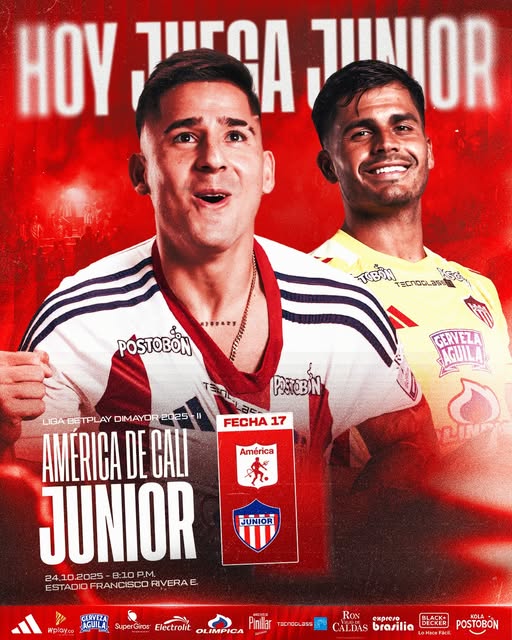 Esta noche a las 8:10 p.m., en el estadio Francisco Rivera de Palmira, Junior enfrentará al América de Cali en un duelo clave de la fecha 17, con el objetivo de recuperar el liderato, mantener la racha de victorias y complicar las aspiraciones del equipo escarlata de clasificar a los cuadrangulares finales.