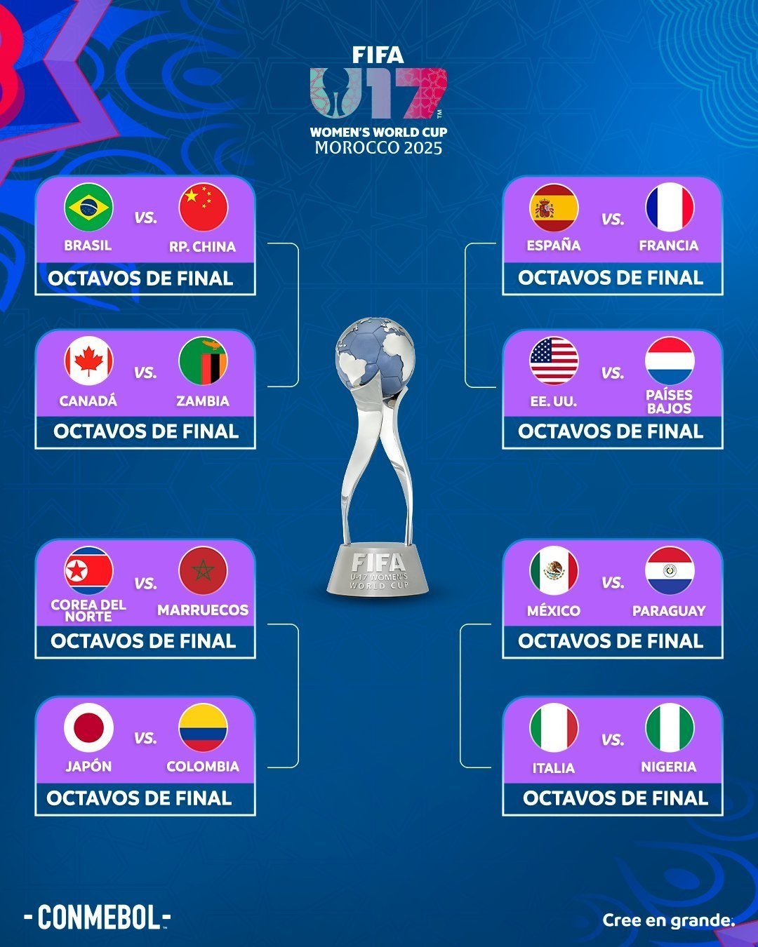 El Mundial Sub-17 femenino entra en su fase decisiva este martes con la disputa de los octavos de final, donde cuatro partidos definirán a las primeras selecciones que avanzarán a la ronda de cuartos de final del torneo que se cumple en Marruecos.