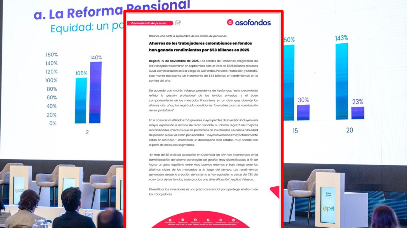 Los fondos de pensiones en Colombia reportaron un ahorro total de $525 billones al cierre de septiembre de 2025, según informó Andrés Velasco, presidente de Asofondos.