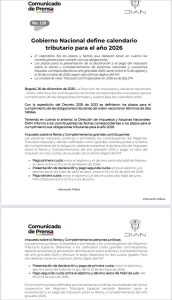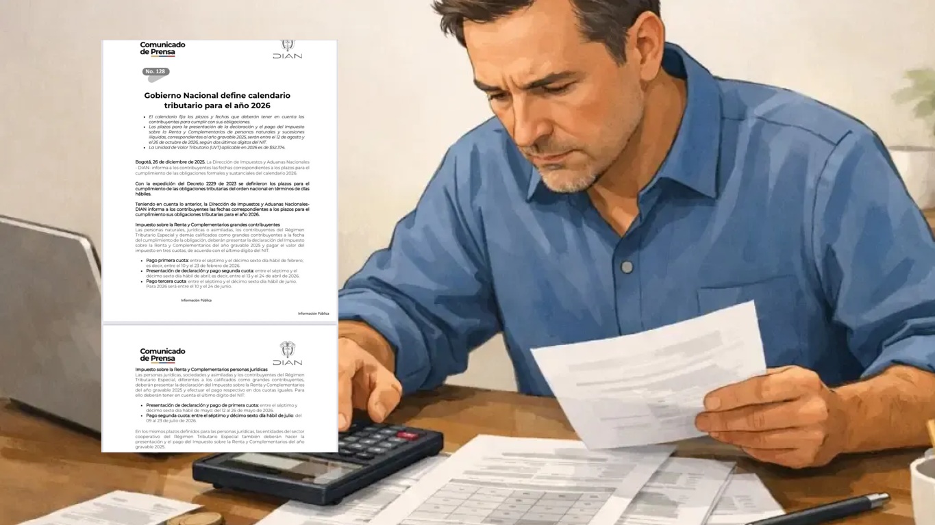 El Gobierno nacional dio a conocer el calendario tributario para el año 2026, revelando las fechas oficiales en las que las personas naturales y sucesiones ilíquidas deberán presentar y pagar el impuesto sobre la renta y complementarios correspondiente al año gravable 2025.